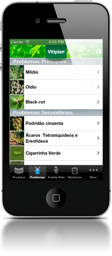 Poderá ainda encontrar informação sobre as soluções fitossanitárias da Bayer CropScience. Brevemente terá um desenvolvimento em linguagem Androide ficando então disponível para outros smartphones e tablets.
